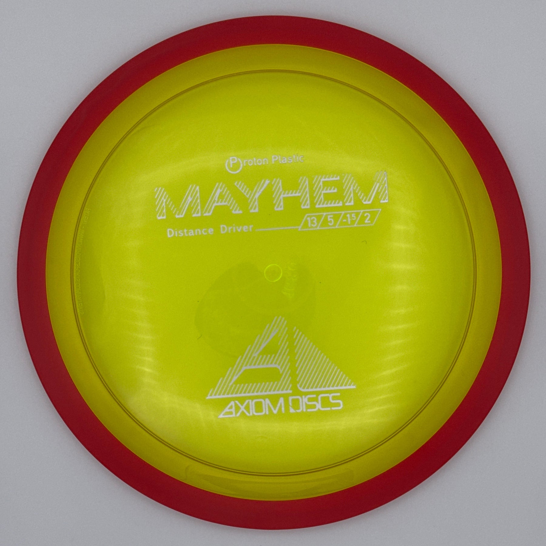 Mayhem has a responsive straight-stable profile and plenty of speed, making it a perfect workhorse driver for many advanced and expert throwers. Like the MVP 23mm class, the Mayhem has a pronounced dome to promote distance-covering glide. Mayhem is best compared to a beat MVP Octane.